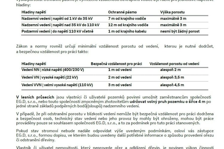 Upozornění vlastníků či uživatelů nemovitostí (pozemků) na potřebu ořezu, případně odstranění dřevin