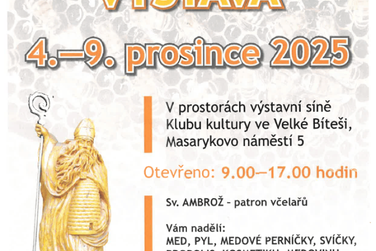 Včelaři ZO ČSV z Velké Bíteše ve spolupráci s Informačním centrem a Klubem kultury Velké Bíteše Vás zvou v termínu od 04.12.2024 do 09.12.2025 na…