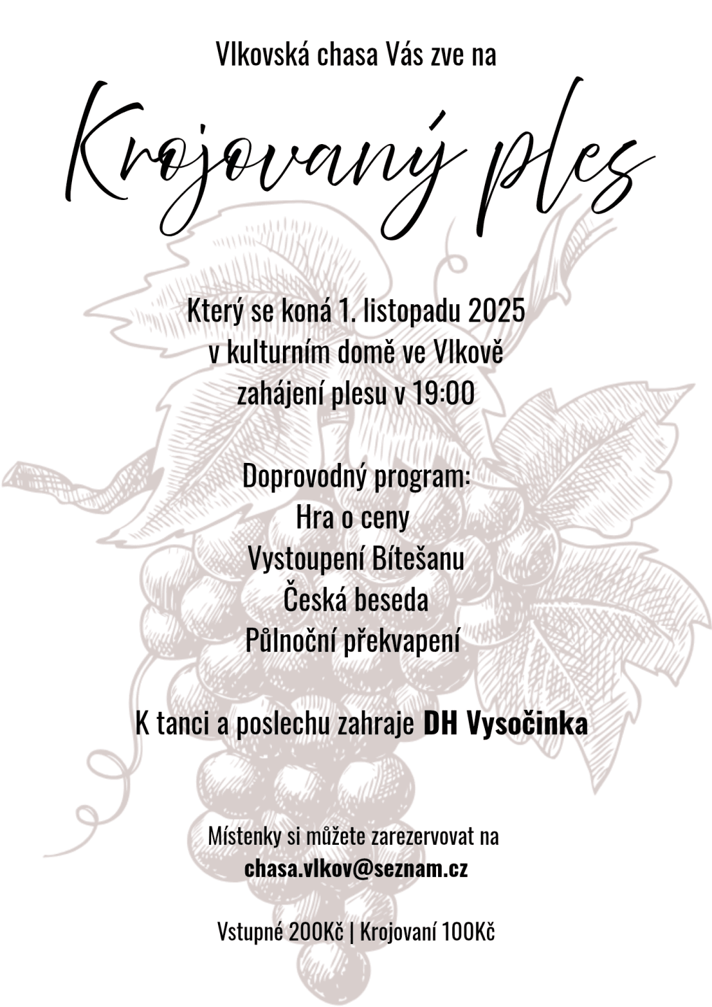 Vlkovská chasa Vás zve 01.11.2025 od 19:00 hod. do kulturního domu ve Vlkově na Krojovaný ples.