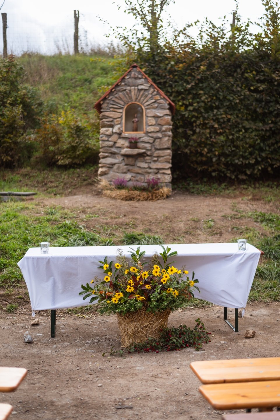 Touha postavit kapličku sv. Františkovi už v naší rodině byla více než 10 let, a když se začala stavět farma nad rybníkem, už v tu dobu zde vznikly základy nynější kapličky. Jak už to bývá, nedostatek času a jiné povinnosti další stavbu zastavily. Až letos přišla ta správná motivace dát baru U Františka svého Františka a sezónu ukončit symbolicky na Františkův svátek. I když se po dlouhou dobu letních měsíců zdálo, že se na kapličce žádné práce nedějí, ve skutečnosti se v hlavách našich stavitelů rodil plán. Vidina jasného deadlinu podpořila snahu a kapličku se podařilo dokončit včas. Díky tomu jsme mohli společně s vámi 5. října oslavit první Třídvorskou pouť ke sv. Františkovi. Pouť byla krásná, nejen že nám sv. František zařídil pěkné počasí, ale také jste přišli vy, a společně jsme tak mohli slavnostně zakončit letní sezónu v minibaru.