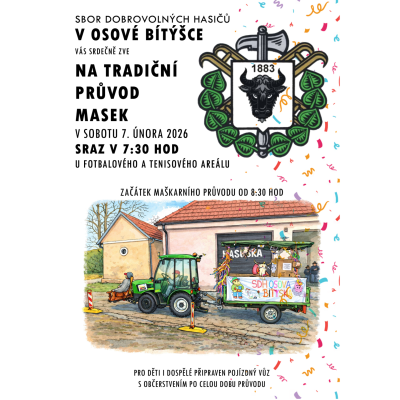 Myslivecký spolek Osová Bítýška Vás srdečně zve 16.01.2026 od 20:00 hod. do Centra kultury, sportu a zájmových činností na Myslivecký ples. Prodej…